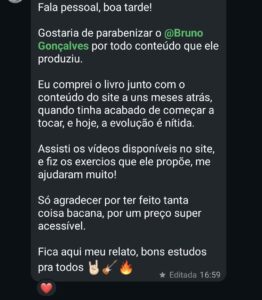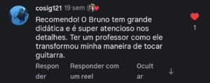 Depois de anos de suor e muto esforço, sempre buscando se aprimorar e investindo nos estudos de guitarra, Bruno atingiu um nível musical que nunca imaginaria ser possível – e agora sua missão é ajudar guitarristas como VOCÊ a evoluir cada vez mais em direção aos seus objetivos e sonhos!